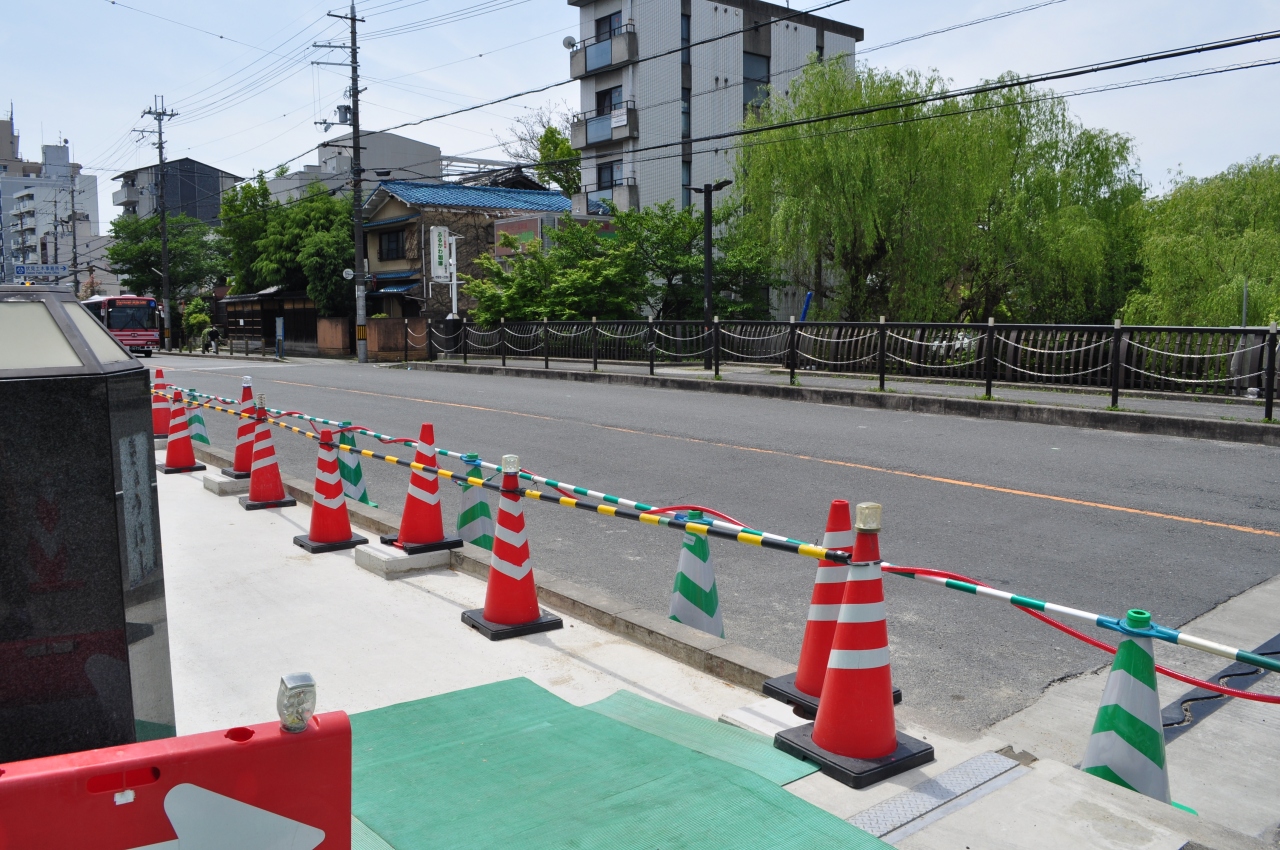 中書島駅から115号線をまっすぐ北上していくと、5分ほどで濠川に架かる京橋にたどり着くことができます。ここ京橋の付近は水路が発達しており、かつてはたくさんの商船が行きかい、大変な賑わいだったそうですが、明治に入って鉄道の発達により水路による物流は次第に廃れていってしまったそうです。ここ京橋から眺める濠川は当時の姿をなんとなく留めているような気がして良い風景でした。
