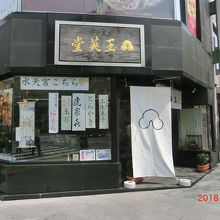 どら焼きの玉英堂の場所を聞いて人形町通りの角にある