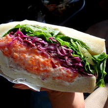 ベジ食べるパン、キャロットラペや紫キャベツ、レタスがたっぷりと入ってとてもおいしかったです。体によさそうな味でいた。