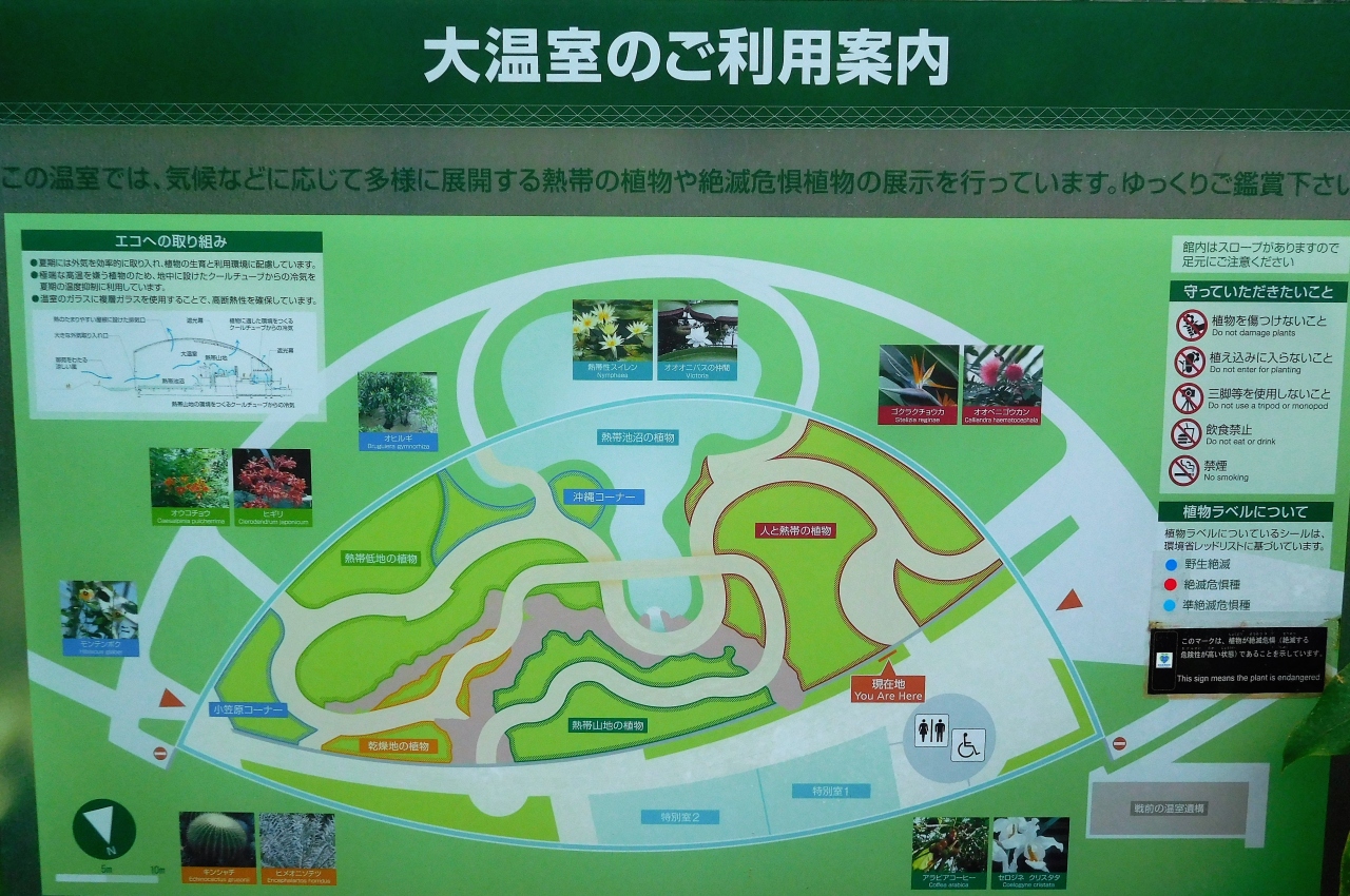 「人と熱帯の植物」「熱帯沼地の植物」「沖縄コーナー」「熱帯山地の植物」などのコーナーがあります。