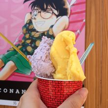 鳥取県の北栄町の米花商店街にあるジェラート屋さん。米花商店街は、新一の家や、喫茶店ポアロがつくられている場所です。コナン百貨店の隣に、このジェラート屋さんがありました。