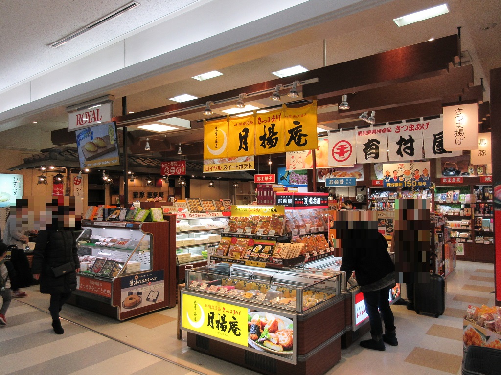 鹿児島の保安検査場前にある鹿児島土産を扱う売店です。薩摩揚げの月揚庵もありますし、他にも鹿児島らしい焼酎なども販売していました。子供むけの簡単なキーホルダーやマスコットのようなものもあって、一通り揃うので重宝します。珍しい鹿児島茶も購入しました。