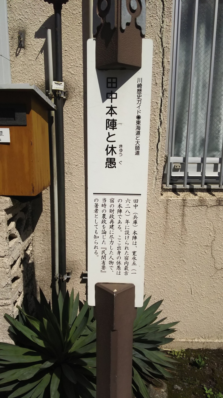 川崎宿にある本陣のなかでももっとも古い田中本陣があった場所です。