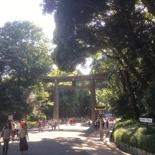 明治神宮には、本殿の前の南玉垣鳥居や、原宿駅側の参道入り口の一の鳥居など大きな鳥居がありますが、明治神宮の大鳥居はその中間の場所にあります。