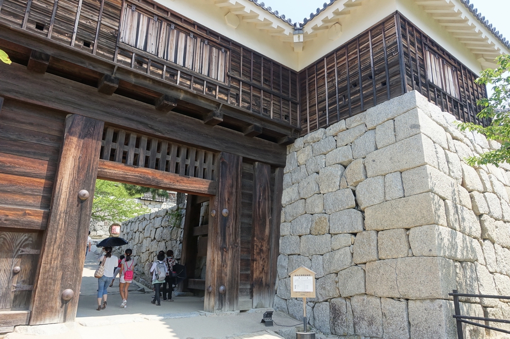両脇を石垣で挟まれ、門の上に櫓のある重厚な門です。ちょうど甲冑を身に着けた人たちがいて、いよいよ城へ入っていくといった気分にしてくれました。この方たちがどういった人たちなのかは分かりませんが…