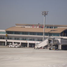 温泉県と言われているだけあってここの空港には足湯があります。到着口を出ると左手にあって飛行機に乗ってむくんた足の疲れを癒すことができました。市内に出るにはレンタカーかバスと車でのアクセスのみです。バスも離発着に合わせて運行しているようなので問題ないかと思います。売店やレストランも少ないコンパクトな地方空港です。