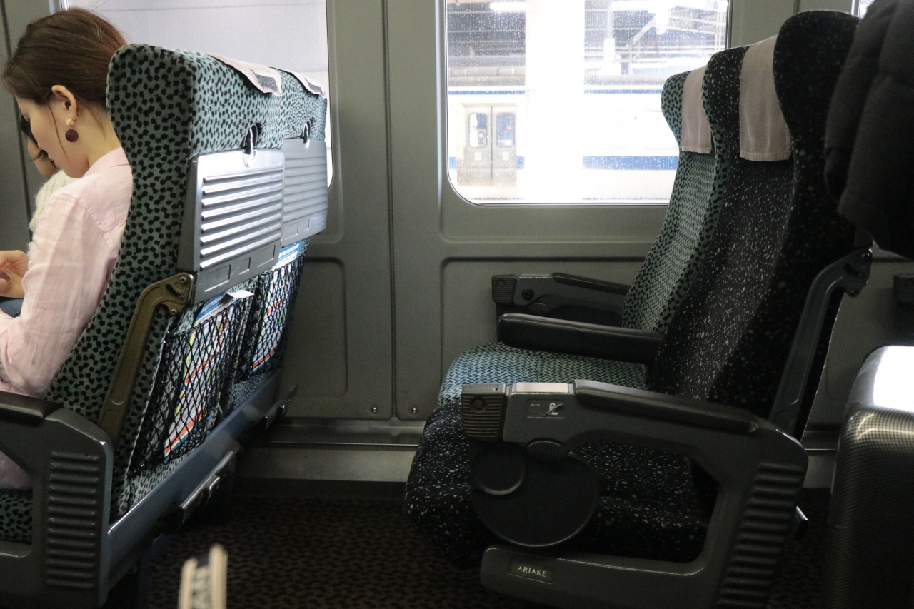 前面が稲妻型になっているのがかっこよい車両でした。荷物置き場が車両中央にある独特な配置で、同じ車両内なのに少し違和感を感じます(笑) 停車駅もそこまで多くなかったので人の出入りも少なく快適に過ごすことができました。