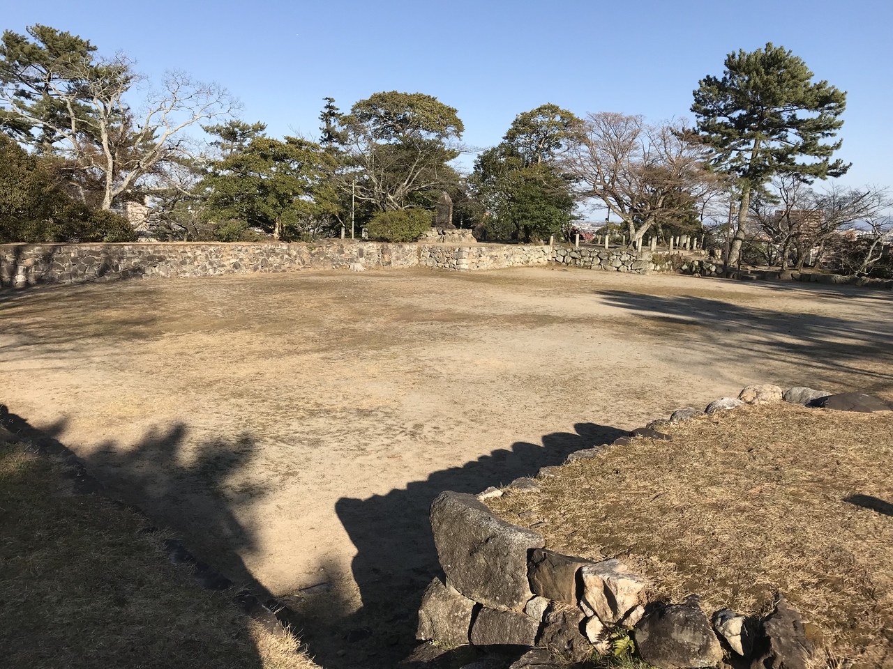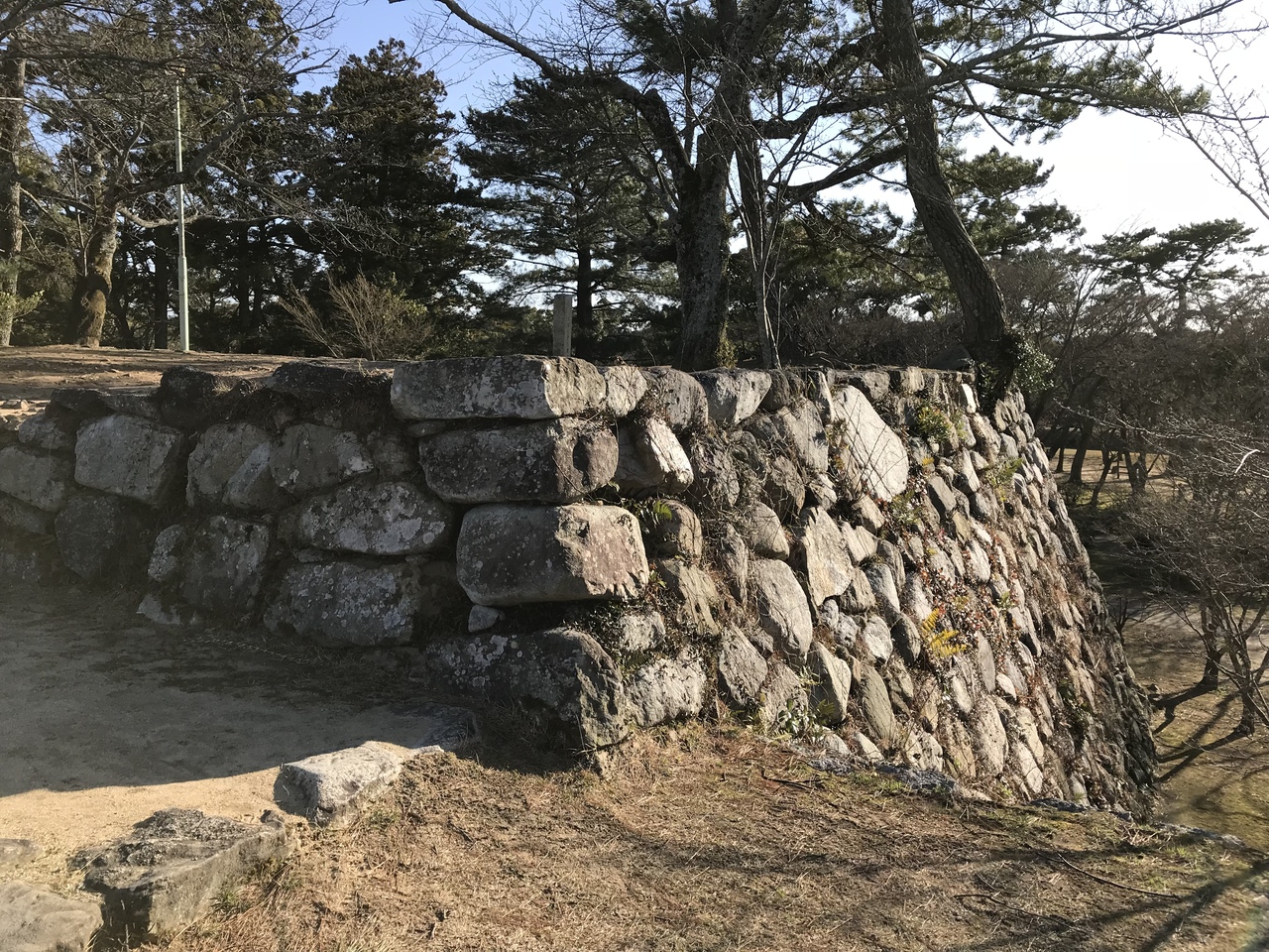 石垣で囲まれた遺構の残る城跡。