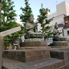 二尊仏は、雷門から仲見世通りを進み宝蔵門手前右側にあります。目立たない場所にありますが、江戸時代初期からある金銅の立派な坐像で、右側が観音菩薩、左側が勢至菩薩がどっしりと鎮座しています。間近で見ると存在感があり見ごたえがあります。