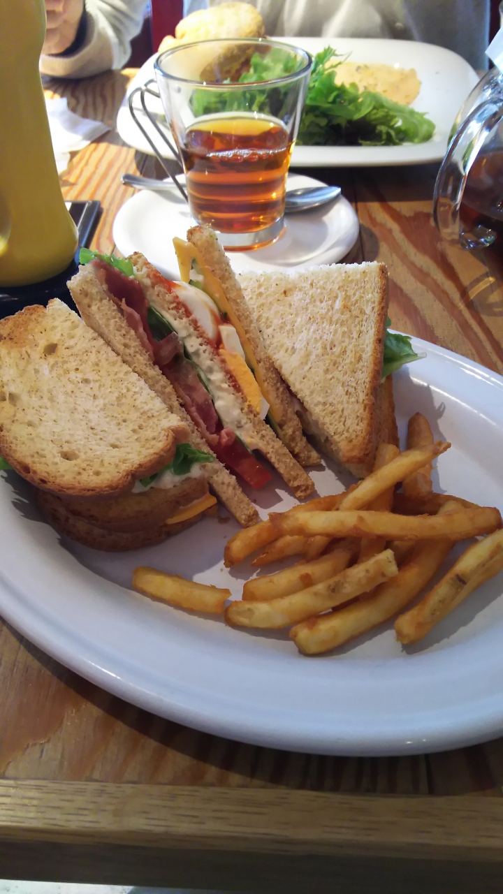朝10時よりOpenなので出かける前に利用しました。ビスケットサンドなるものが名物みたいです。それを注文。チキンとベーコンが、表面さくさくのビスケット生地ではさんであり、チーズシチューのようなソースをつけていただきました。もっとソースが濃いといいかな。もう1つのクラブハウスサンドイッチはおいしくいただきました。