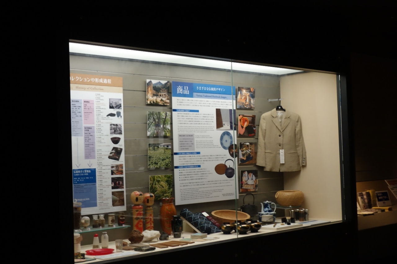 お茶の水の明治大学キャンパスの一角にあるアカデミーコモン地下にある常設展示場に入っている3つのテーマ展示のうちの一つです。陶磁器、漆器、染色、織物など日本の伝統工芸製品が展示されていて仕事の段階などもわかって勉強になりました。