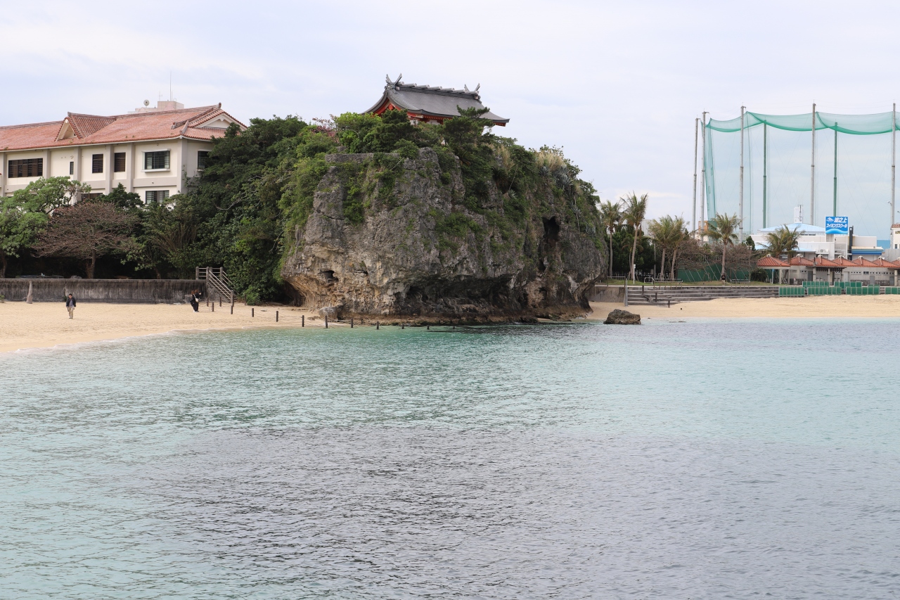 ビーチにある岩の上に建つ神社がこれまた不思議でした。