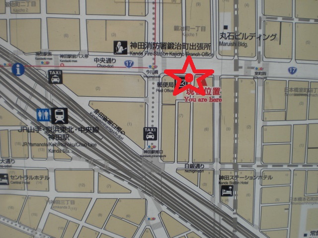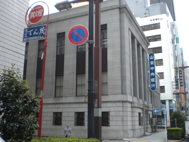 神田駅南口から東に行くと今川橋交差点があり、国道17線沿いに進むと西側に、山梨中央銀行東京支店があります。