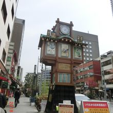 甘酒横丁の左右に町火消衆と江戸落語のからくり時計がありました