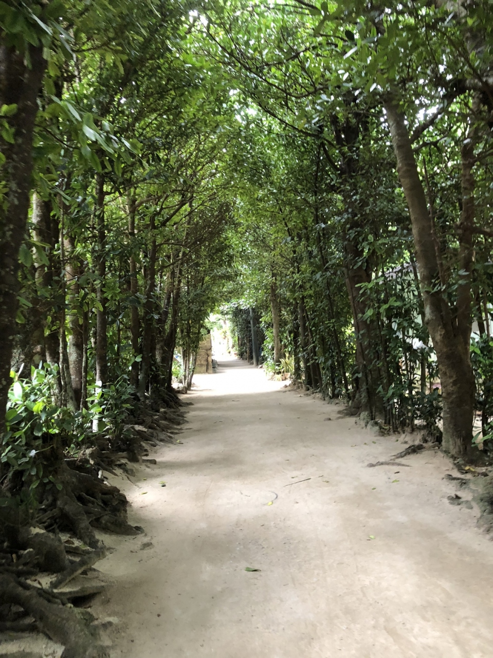 美ら海水族館から車ですぐです。フクギ並木を歩いてるとマイナスイオンたっぷりでとても癒されます。歩くこともできますがレンタサイクルや水牛車に乗ることもできます。すぐ側に海もあるので潮風を木々の間から感じることができました。