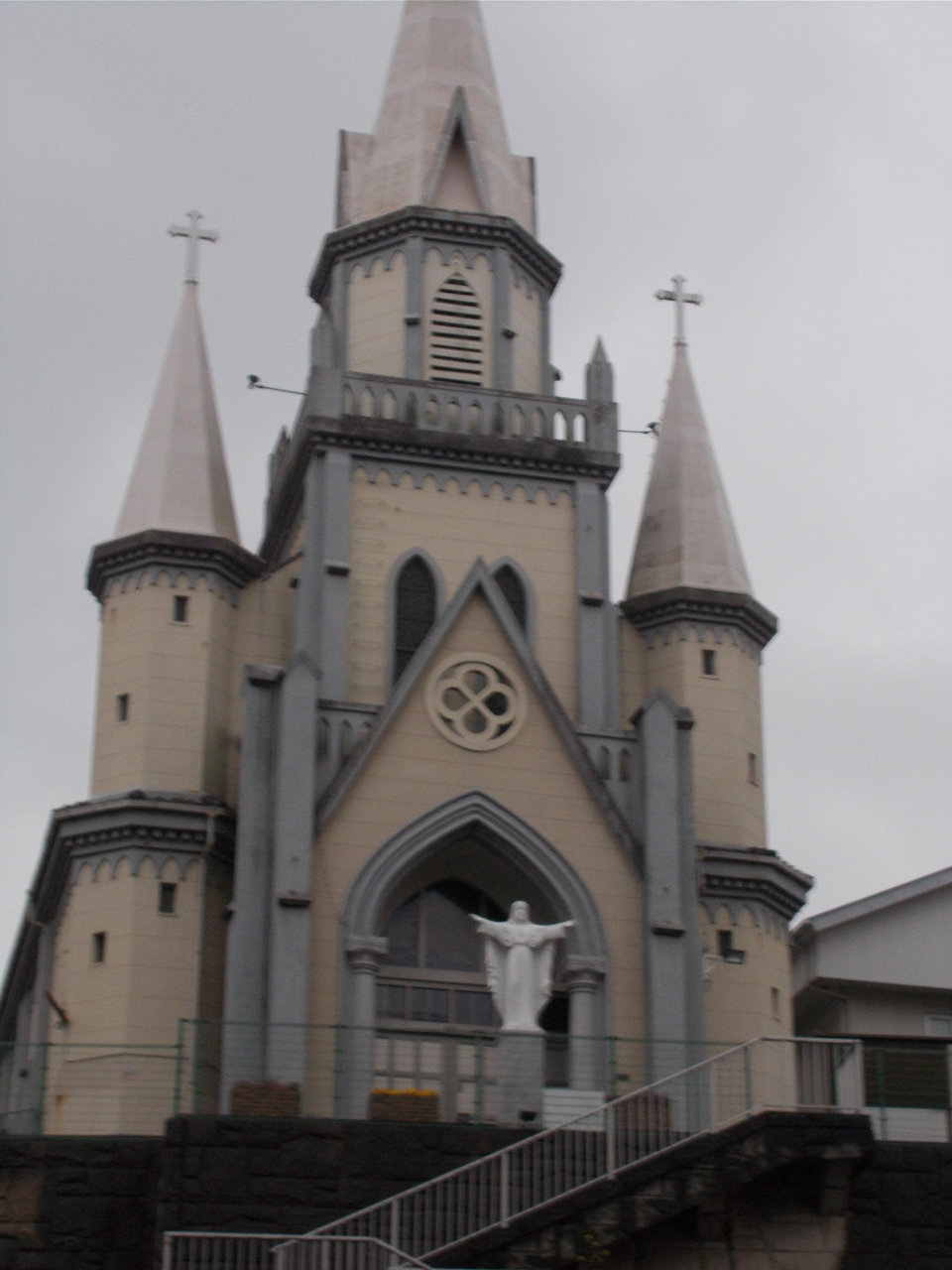 この三浦町カトリック教会は19世紀末に作られたのですが今の場所に1931年に新たに作られました。今は白壁ですが第二次世界大戦中はコールタールを塗って黒い壁にしています。空襲を避けるためです。近世の取れた教会で少し高いところにあるので見ごたえがあります。内部にも入れます。素朴な印象です。