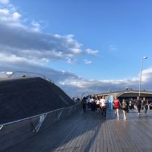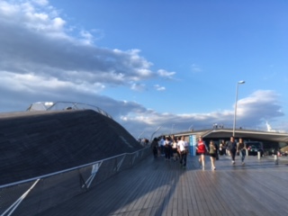 赤レンガ倉庫の位置から、船のような大きなものが海側にあるのを見て、いってみました。フェリーターミナルそれ自体がまるで船のような印象でした。床はウッドデッキで仕上げられており、コンクリートで近代的な建物構造になっています。