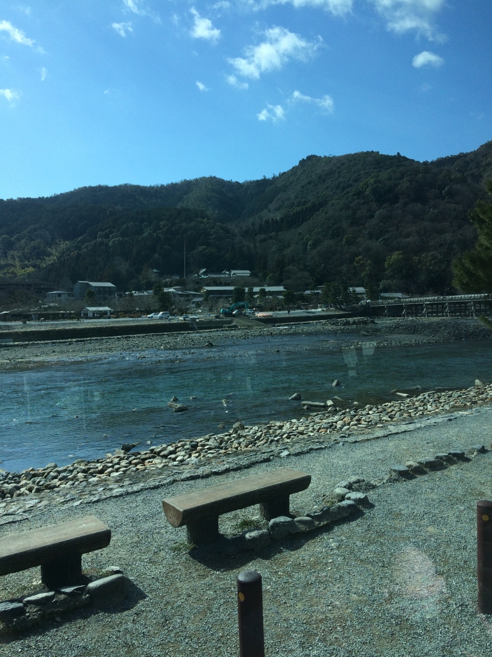 真冬だったので寒々しい景色ではありましたが、渡月橋が見え始めてくるあたりではたくさんの人が散策しながら川の流れを見ていました。