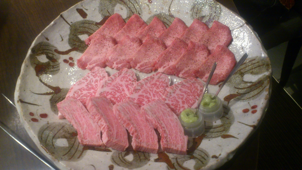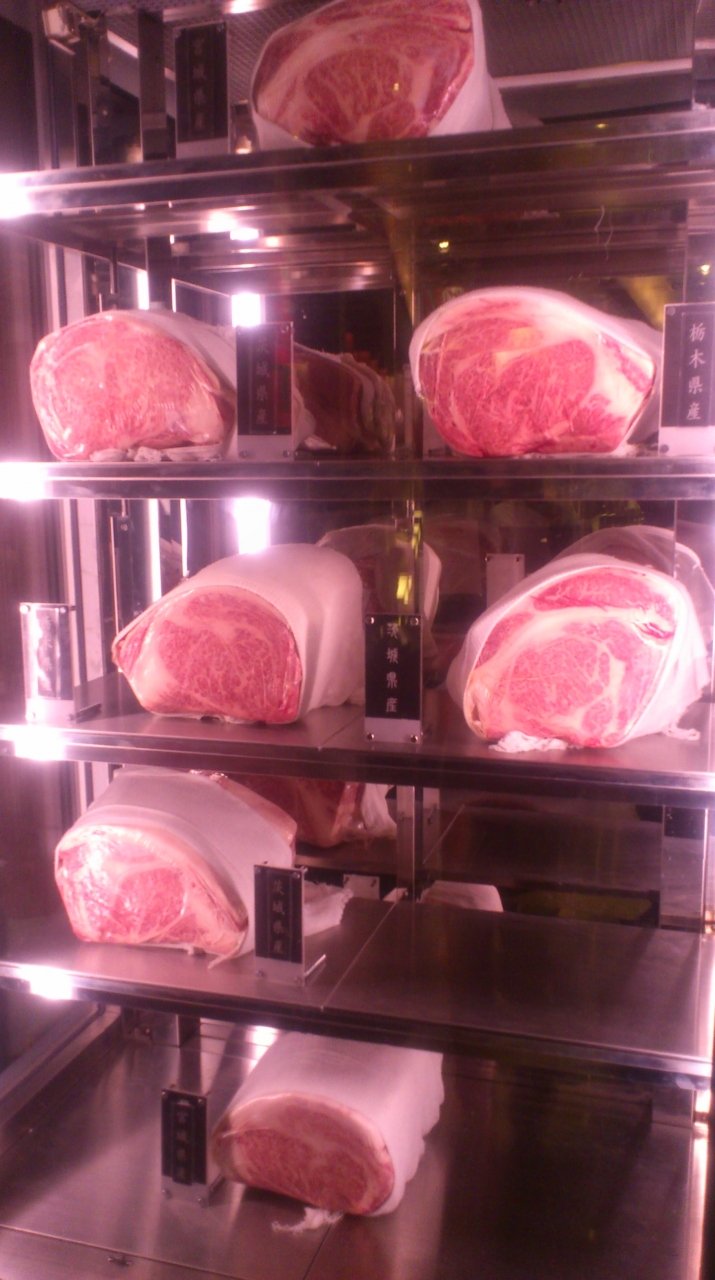レジ横のガラス張りのケースに肉の塊が飾ってありますが、すべてキレイな霜降りのお肉です。