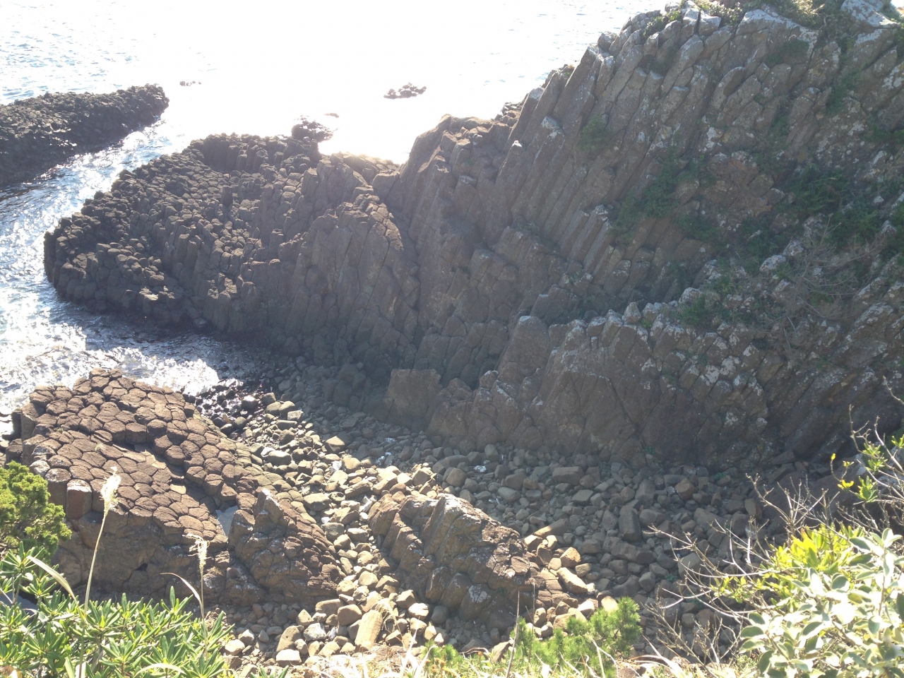 海も水が綺麗で、人も少なくのどかな場所でした。白い灯台まで行くとさらに景色が綺麗ですが、海なのでかなり風が強かったです。裏側にマグマが固まってできたとう六角形の鉛筆のような形が突き出た柱状節理もあってみごとでした。