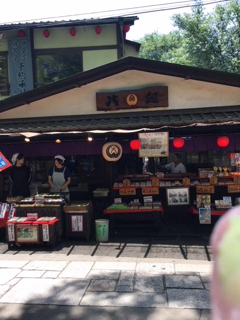 深大寺の山門近くの門前というお店で深大寺そばを食べた後に、ここで草団子を購入しました。お店の前にベンチがあり、それだけでなく無料のお茶の準備もしてありました。みなさんここに座って、お茶を飲みながら団子を頬張っていました。良いお店です。