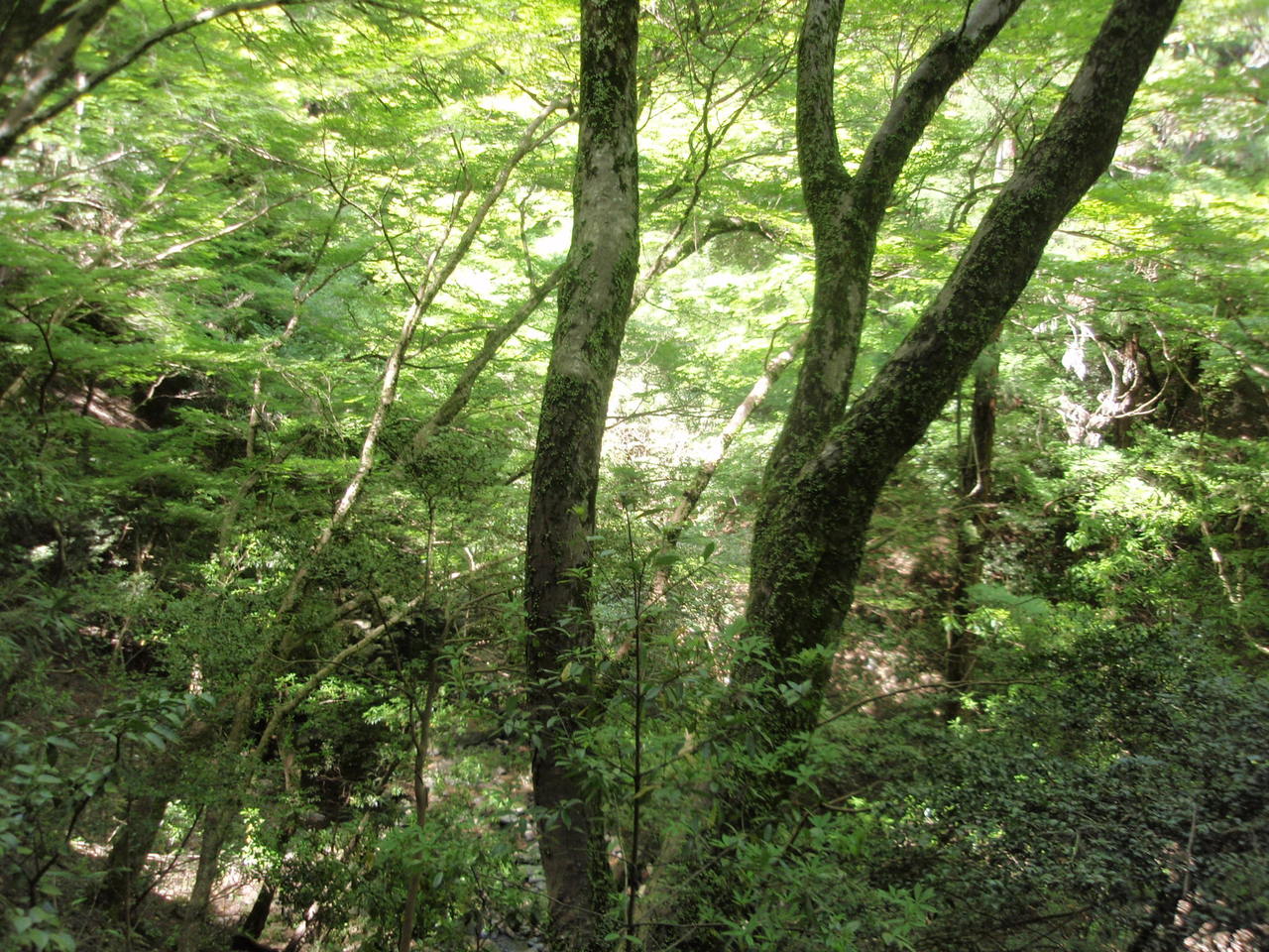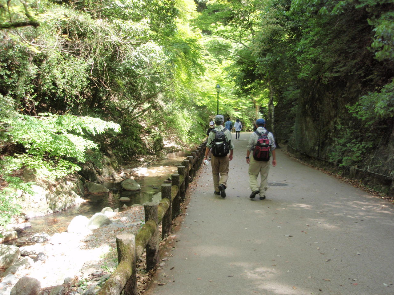 箕面公園は箕面駅から箕面川沿いにある遊歩道を中心とした公園で、大滝を始め瀧安寺、野口英世像、昆虫館、温泉、桜広場(桜の名所)等の施設や自然・景勝のあるところです。遊歩道には4つの登山口があり、一番駅に近い登山口は六個山(桜広場の標識がある)から、2つ目は五月山、3つ目は箕面山(標識は三国峠)、4つ目は大滝の少し手前から北に向かって坂を登り天上ケ岳に行けます。遊歩道の秋の紅葉は見事ですが、春の季節も緑がきれいで、心が洗われます。都心から近い観光地ですので、何時行っても人が多いです