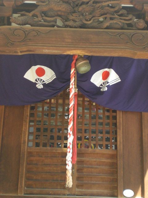 佐竹稲荷神社には、扇に日の丸の紋が描かれています。佐竹藩の家紋です。