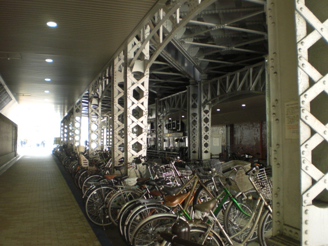 新石橋架道橋は、神田駅の南口が出て来て、最初の道路に架かっている関係上、比較的に、広い感じのする架道橋です。広い歩道を有効活用するため、自転車置き場が設置されている等、工夫が凝らされている感じです。