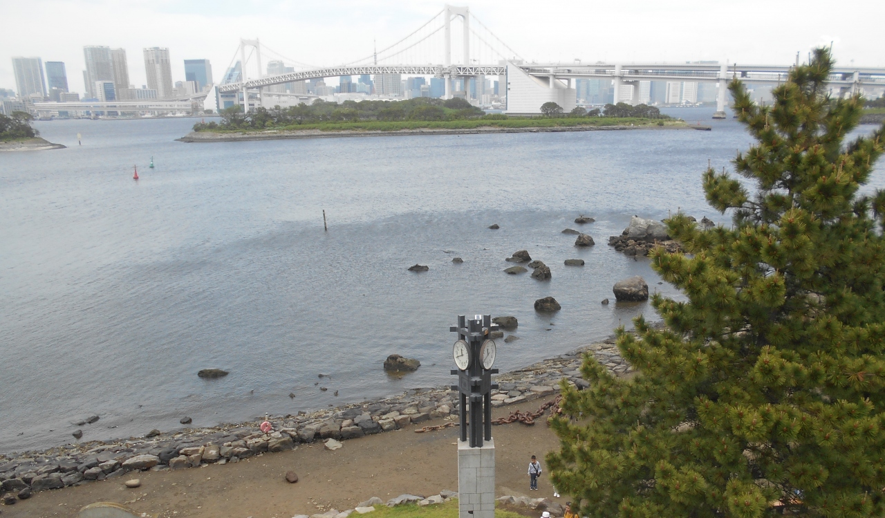 フジテレビから歩いてスカイウォークを歩いて数分でたどり着きました。自由の女神があつたり、遠くにレインボーブリッジや船舶が行き来するのが眺められました。ゴールデンウィークだったので、出店がたくさん出てて賑やかだけど、海が近いので風が強く長居はできませんでした。