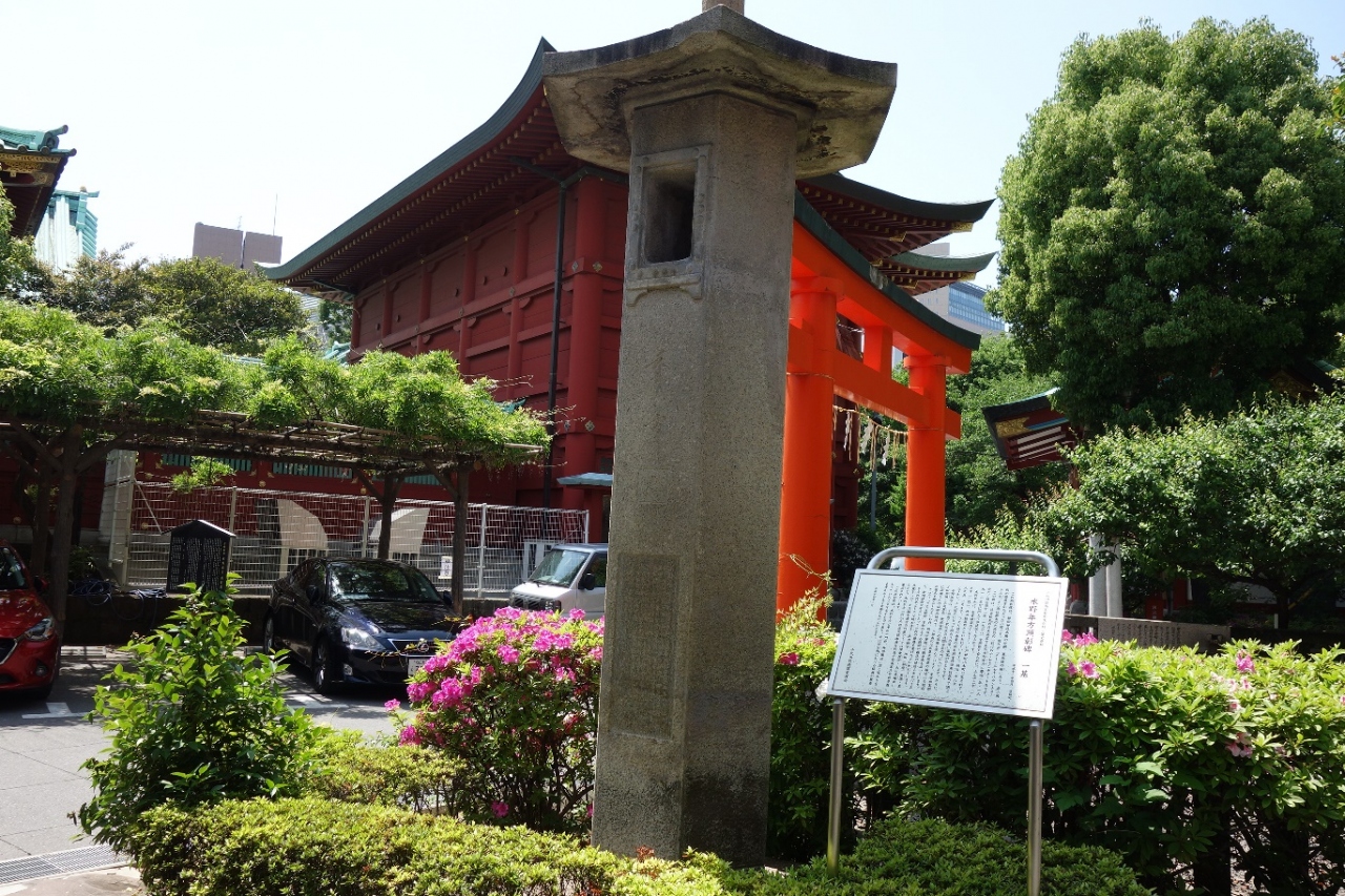 顕彰碑がありました。神田明神には他にも石碑や句碑など置かれていますが、こちらの石塔は高さがあるためとても目立ちました。水野年方は江戸時代に才能を発揮した浮世絵の画家だそうです。