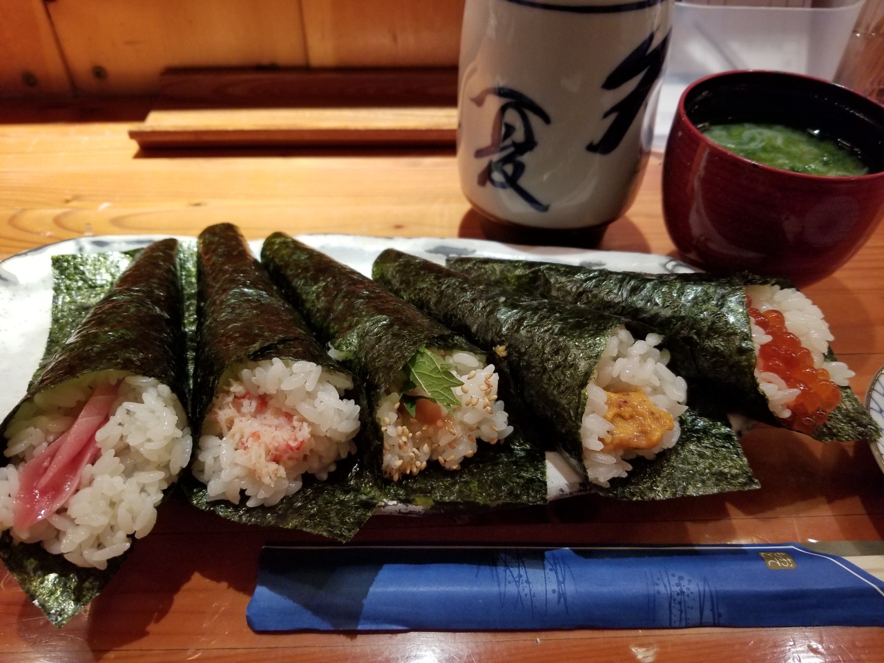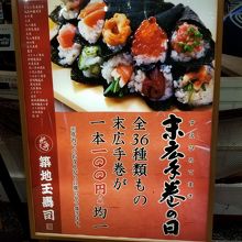 毎月8日は末広手巻き寿司の日ということで36種類の手巻き寿司すべて100円でいただくことができます。もちろんウニやいくらも100円!テーブルの注文表に書き込んでオーダーするシステムです。ランチタイムは混みあうので少し時間をずらして来店するのが良いと思います。(月によっては開催しない月もあるようなので事前確認をおすすめします)