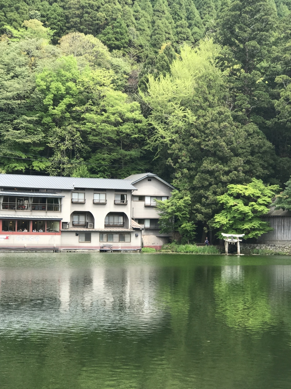 ゆふいん駅から徒歩20分ほどですが、あれこれお店を冷やかしながら行ったのでだいぶ時間がかかりました。特に何があるわけではなく、小さな湖です。観光客のほとんどがここを目指して散策されると見え、湖畔は賑やかです。湖に映る山の緑がきれいでした。