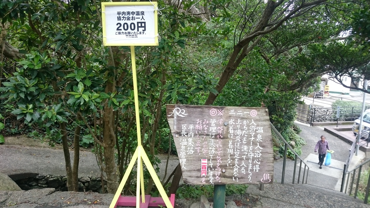 屋久島の平内海中温泉は干潮時の前後2時間しか入れません。満潮時は海に沈みます。(入浴可能時間をネット等で事前調査して下さい。)野湯の為、脱衣場等はなく水着も禁止の混浴です。女性は「ゆ着」での入浴がおすすめです。(入浴協力金 200円)