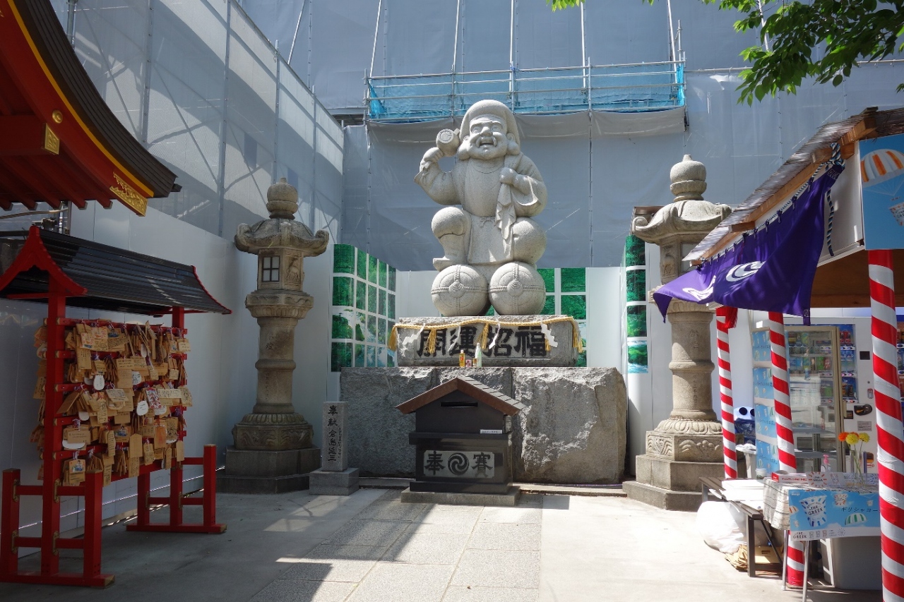 神田明神を訪れた際に随神門を入ると御神殿に向かって左側に大黒様がおられるのを見つけました。石造りの像は大変大きくて立派で存在感がありました。こちらに向かって笑顔を見せているお姿は運をいただけそうな神々しい雰囲気がありました。