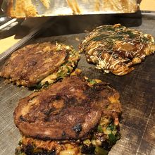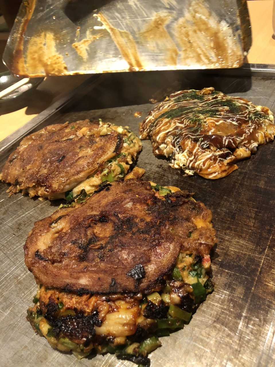 ネギ焼きとお好み焼きをシェアして食べました。お好み焼きはトロトロフワフワで美味しかったです!