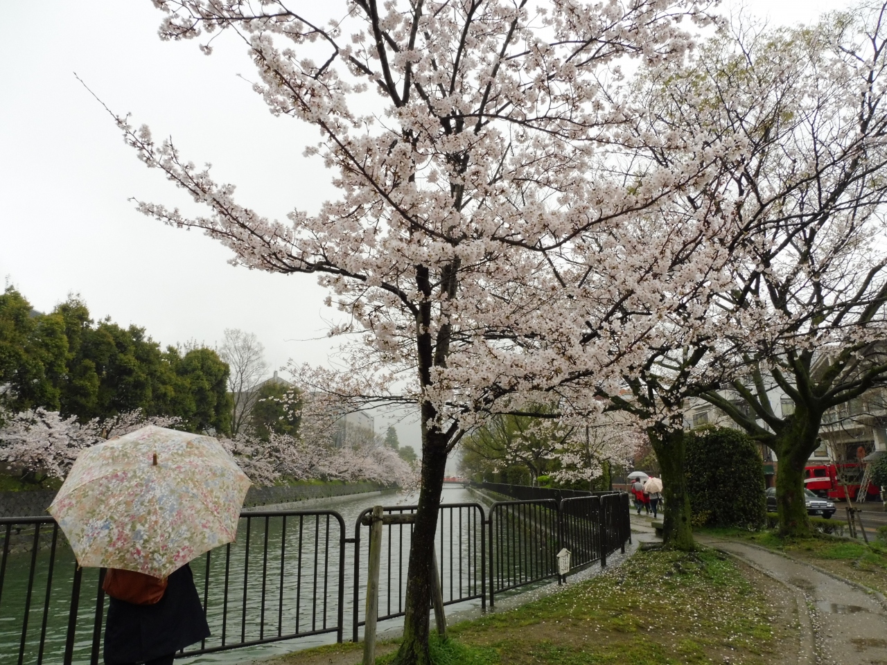 ただの移動のはずがちょうど桜の時期で雨に濡れた桜は水路に映えて美しい事、雨に打たれる桜並木を散策してきました。