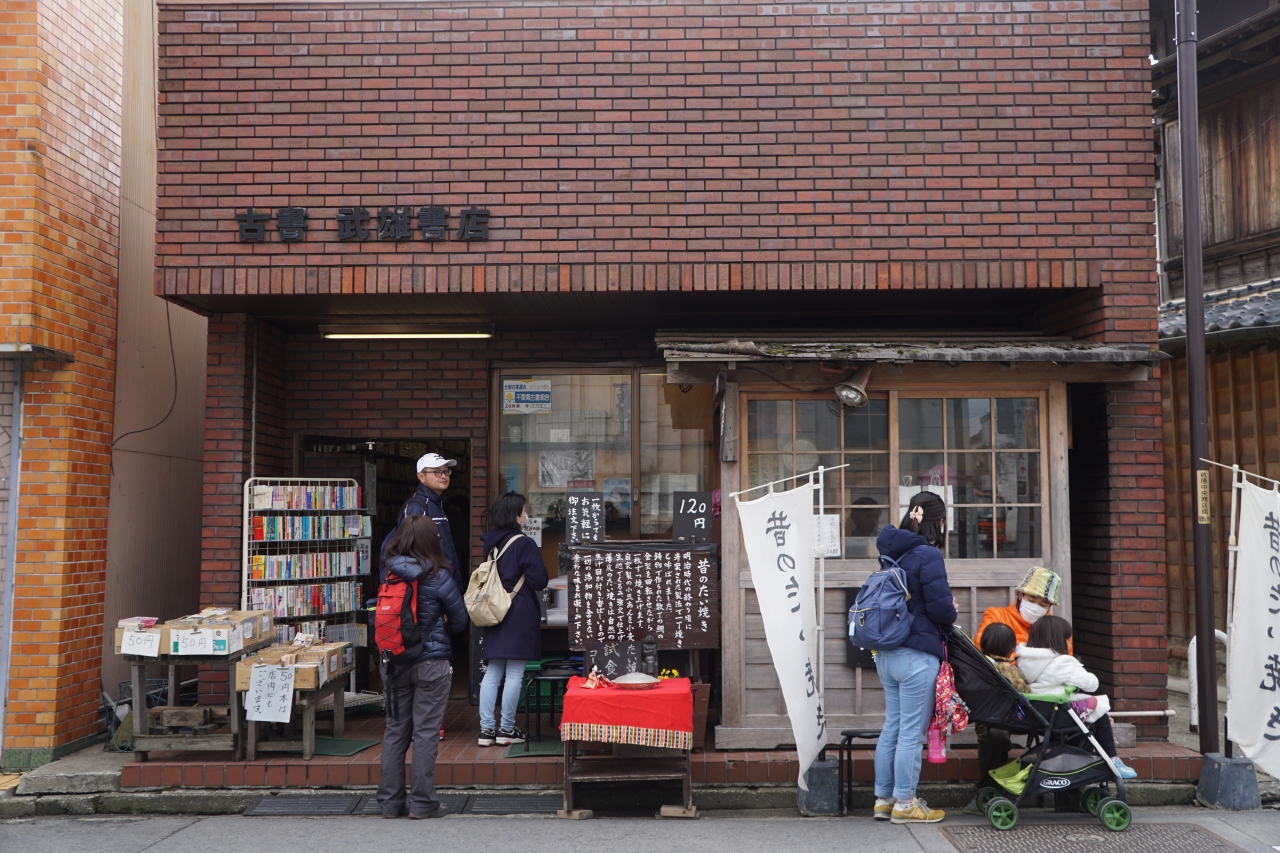 武雄亭は、忠敬橋からもすぐの佐原市街中心部。書店の入口に店を構える有名なたい焼き屋さんです。冷めてもおいしいというのがウリですが、まあそんな感じ。一方で、夕方になると売り切れていることも多いので、それは要注意かなと思います。