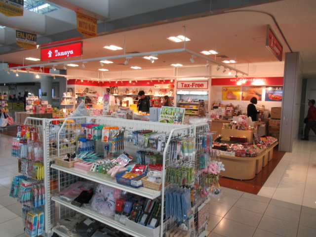 ここは福岡空港国際線ターミナル3Fです。出発口のすぐお隣に玉屋があります。販売している商品は国内線とあまりかわりありませんが、店頭に目立っておいてるのは外国人観光客にも大人気のポッキーやプリッツで、九州限定の福岡で有名なイチゴの「あまおうのポッキー」や超有名な「明太子プリッツ」です。