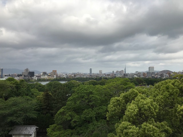 隣にある大濠公園の方が知られていますが、この大濠公園に隣接していて同じくらいの広さがあるのが舞鶴公園です。ほぼ公園全体が福岡城跡になっていて、緑のきれいな公園。天守台跡に上ると周囲を見渡すことができ、絶景を楽しめました。