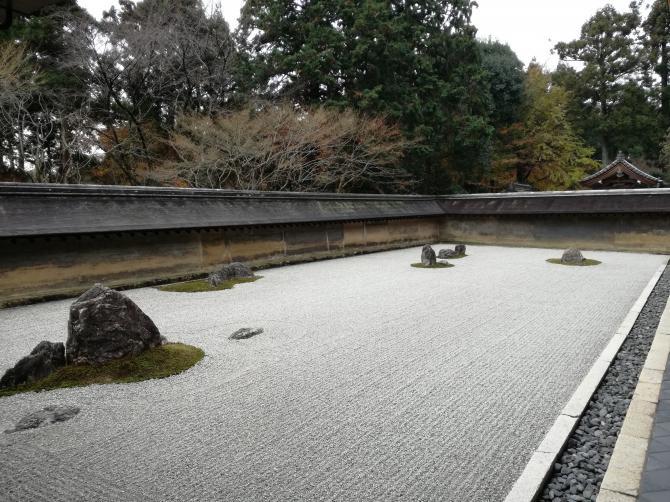 龍安寺は、京都に多くある世界遺産の一つですが、有名な石庭を縁側に座って眺めていると本当に落ち着きますね。