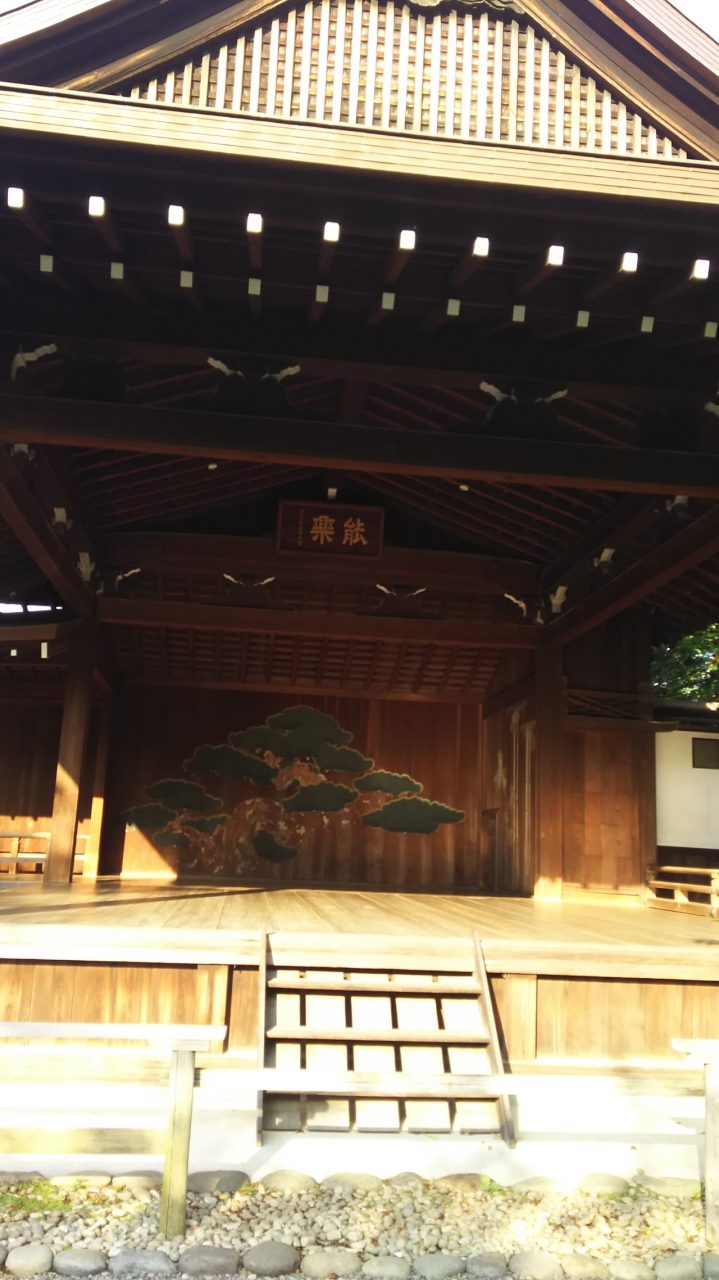 この能楽堂は明治14年に東京・芝公園に建てられたものですが、明治36年に靖国神社に奉納、移築されました。