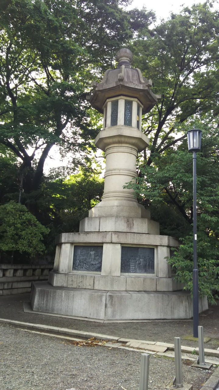 この青銅製の第二鳥居の脇には大きな灯篭もありました。