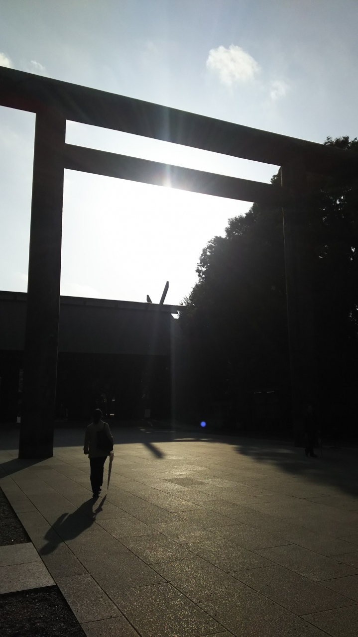 ここの鳥居をくぐるといよいよ靖国神社の神門、そして本堂が近づきます!