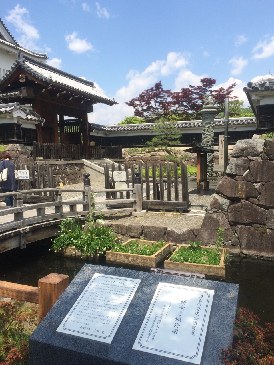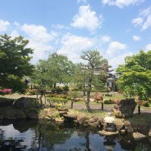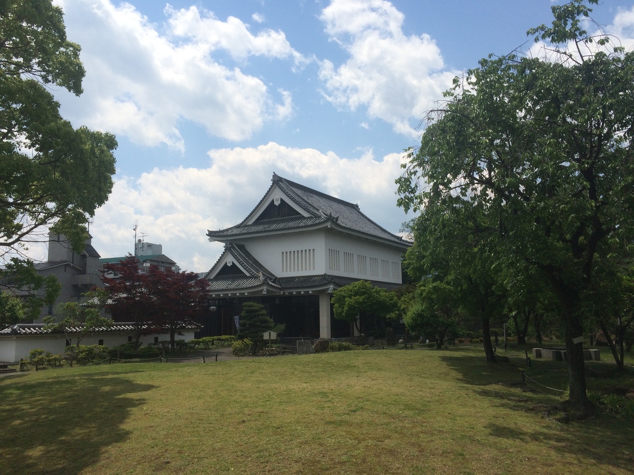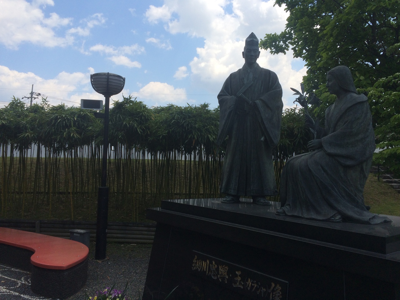 城があり中は博物館の方ようになっていて無料で入れます。細川氏に関する展示が多く、細川ガラシャの展示もありました。ボランティアガイドもいて細川氏の歴史等を説明してくれました。庭は綺麗な日本庭園のような感じでした。堀に囲まれ鯉がたくさんいてのどかな場所でした。