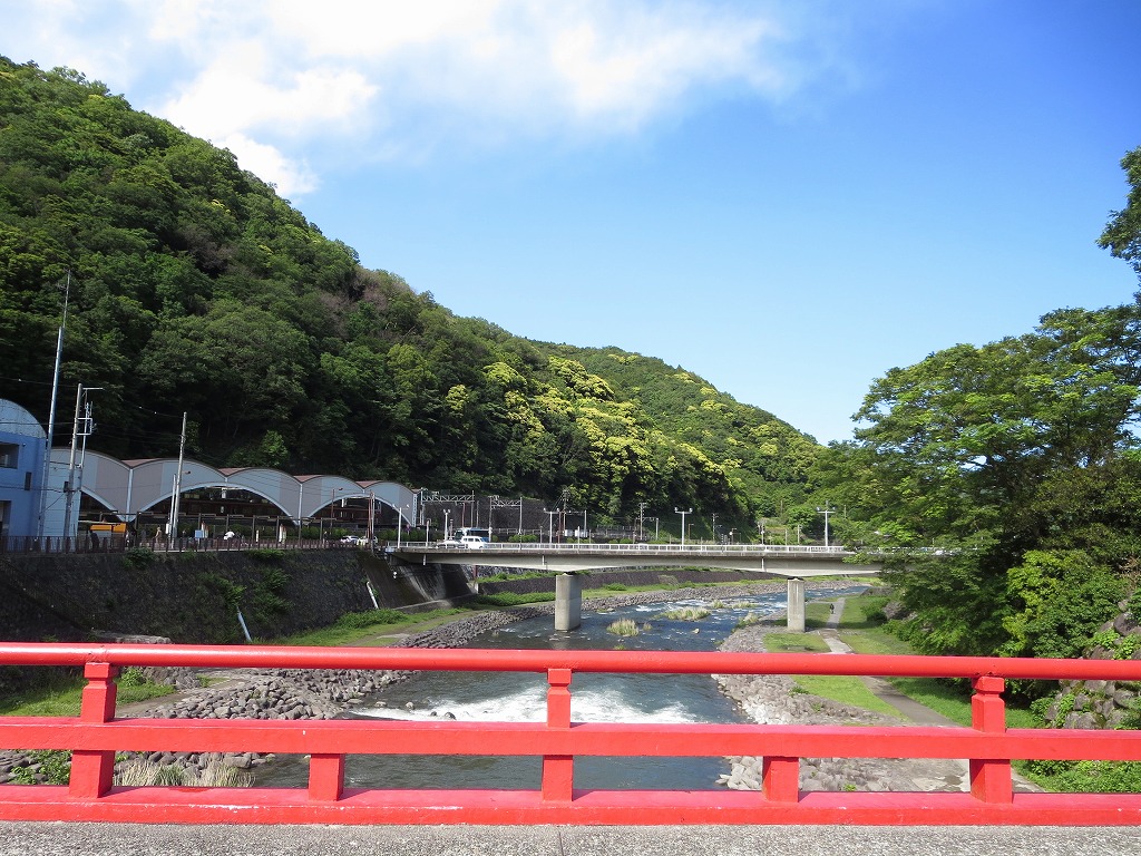 箱根湯本駅の目の前に架かるあじさいばしから眺める清流は、箱根に来たという実感を与えてくれる景色です。奥の山々と川、温泉街が一体となった風景は、日常から離れたリフレッシュとタイムスリップ感をもたらしてくれます。