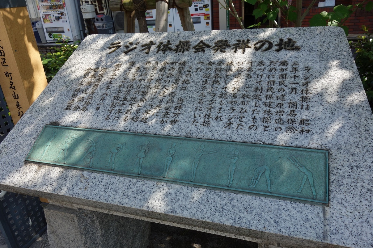 神田川に架かる美食橋を北へ進むと総武線の線路近くに佐久間公園があります。その公園内にこちらの碑がありました。早起きラジオ体操会がここで始まったのだそうで、子供の時から慣れ親しんできたラジオ体操の発祥の地がここだったとは驚きでした。