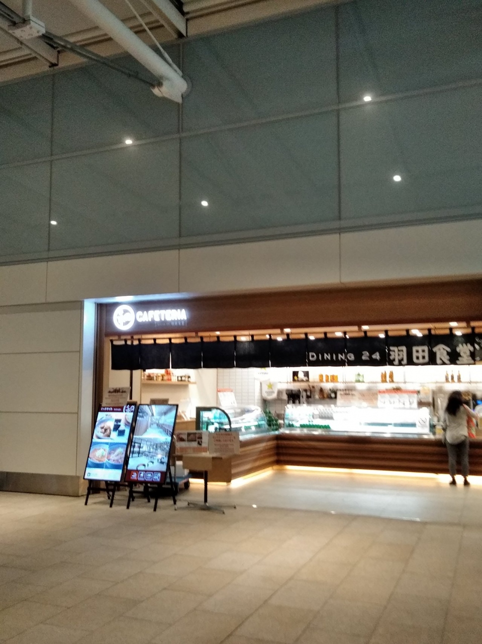 カフェテリアなのに、羽田食堂という、なんとなく和洋が混ざったような?コンセプトのお店です。24時間営業で便利なのと、普通に食べられる定食屋さんのようなメニュー展開が、いいと思います。気軽に利用しやすいです。