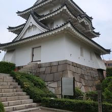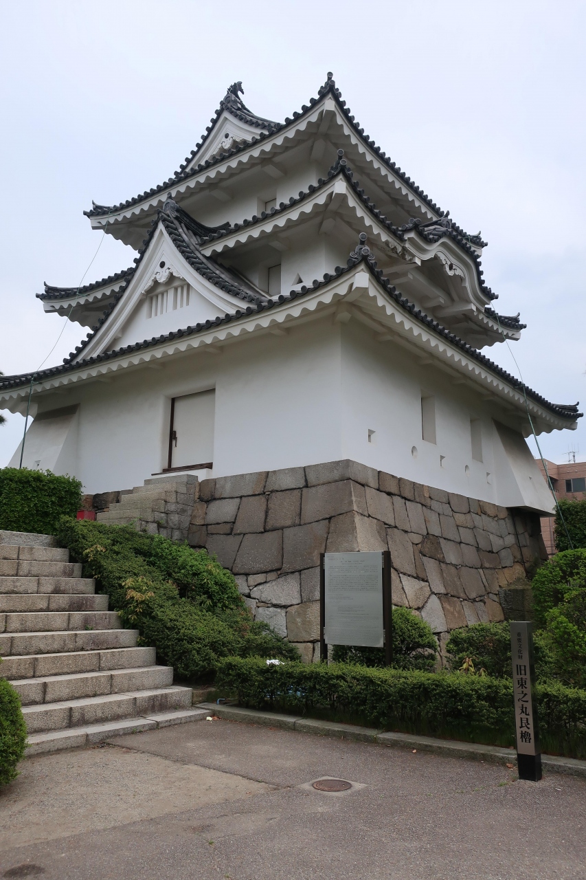 3層3階入母屋造りで唐破風をもつ立派な櫓ですが、そう言われてよく見ると、何となく石垣と不釣り合いの様に見えてきます。