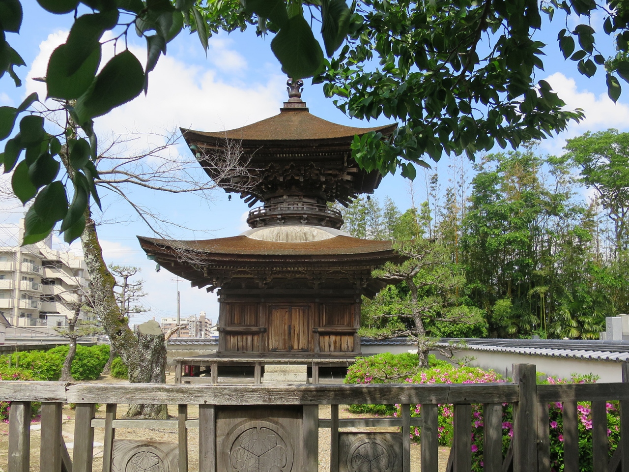 岡崎を訪れる契機になったのが、こちら「大樹寺」です。登誉上人が家康公に厭離穢土・欣求浄土との言葉をかけたことで有名な徳川家菩提寺であり、また「三門」から「岡崎城」が眺められるビスタラインでも知られています。GW中ということもあって、境内は比較的多くの人の姿を見ましたが、一番人気はビスタラインで、写真を撮られて帰って行かれる方も見られました。境内の伽藍は国登録重要文化財の「多宝塔」を筆頭に「三門」・「鐘楼」など文化財ばかりですので見応えがあります。「本堂」からつながる「宝物館」には方丈襖絵や歴代将軍位牌などもありますが拝観料が400円必要なこともあって人の姿は少なく、また墓地の最深部にある「松平八代墓」には人の姿はありませんでした。