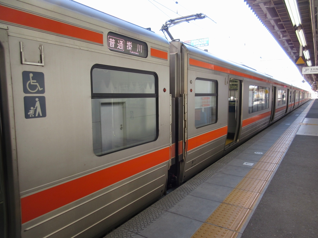 大垣13:11発豊橋行きの新快速電車に乗りました。二人掛け前向き座席の乗り心地の良い電車です。この電車、終点のはずの豊橋駅に着いてしばらくすると、普通掛川行きになります。乗り換えなくても浜松までも行けるんですよね。乗換案内では検索できない冥利。東海道線には、こんな電車がほかにもありそうです。